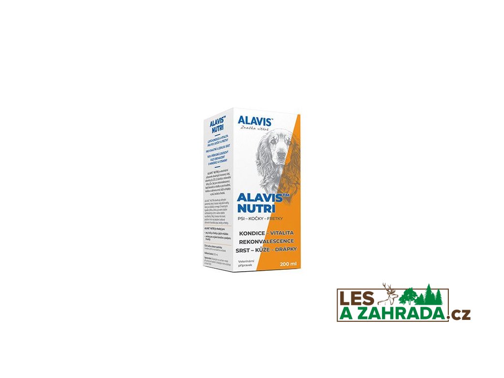 ALAVIS NUTRI je veterinární přípravek obsahující lososový olej, vitaminy (A, D3, E, biotin) a minerální látky (Zn, Se) pro rekonvalescenci, lepší kondici a vitalitu a pro kvalitní, lesklou a zdravou srst, kůži a drápky u psů, koček a fretek.