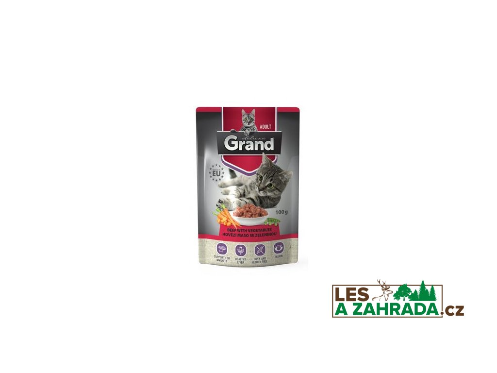 GRAND kaps. deluxe kočka hovězí se zel.100g