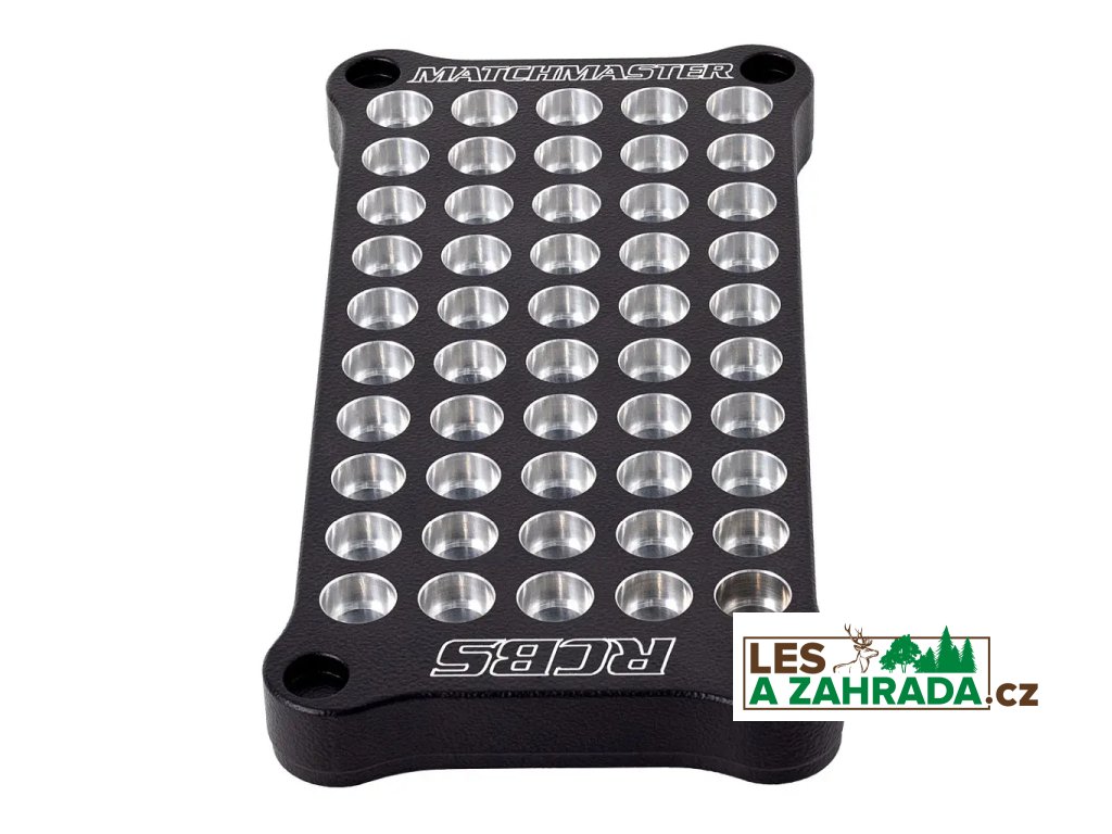 Přebíjecí blok RCBS MatchMaster je praktická pomůcka pro přehlednou a bezpečnou práci při přebíjení nábojů. Umožňuje stabilní uložení 50 nábojnic během jednotlivých kroků procesu přebíjení, jako je plnění střelným prachem, kontrola navážky nebo manipulace s nábojnicemi mezi jednotlivými operacemi.