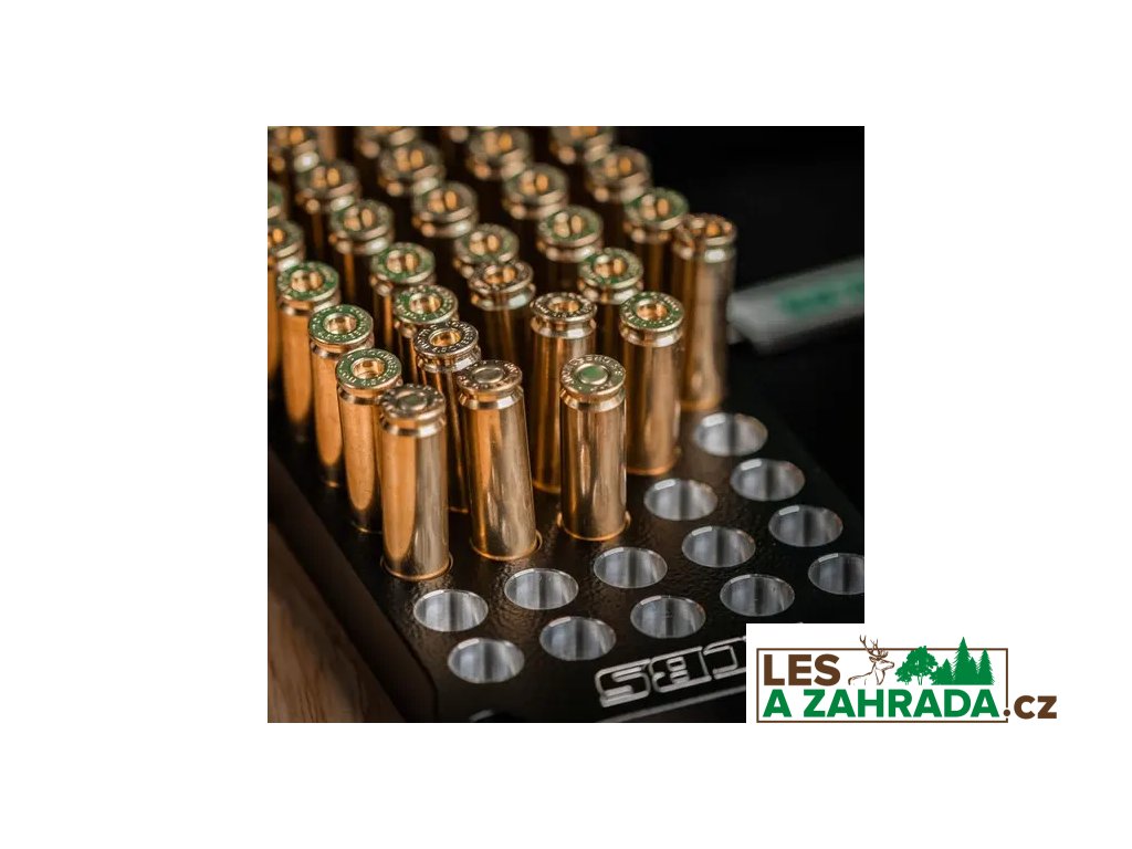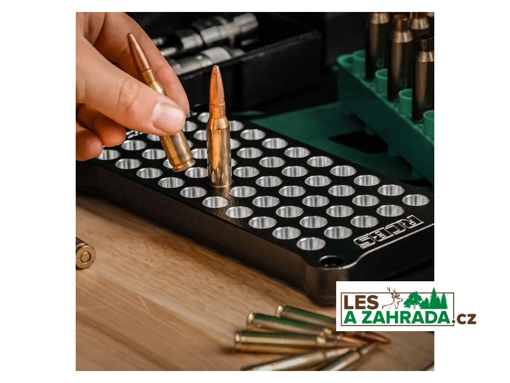 Praktické průchozí otvory umožňují, aby případně vysypaný střelný prach propadl skrz blok, což výrazně usnadňuje čištění. Protiskluzové nožičky zajišťují stabilitu při práci a zabraňují pohybu bloku během manipulace s nábojnicemi.