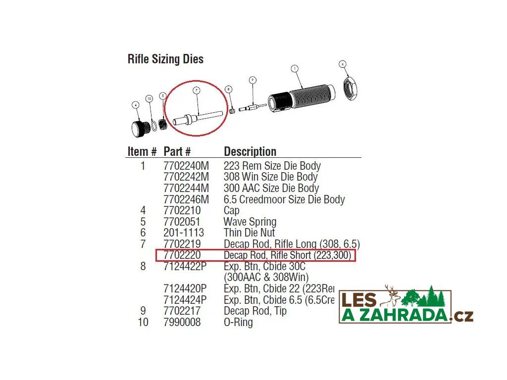 Originální náhradní díl č.7 pro puškovou karbidovou matrici Lyman Pro Carbide Sizing Die.